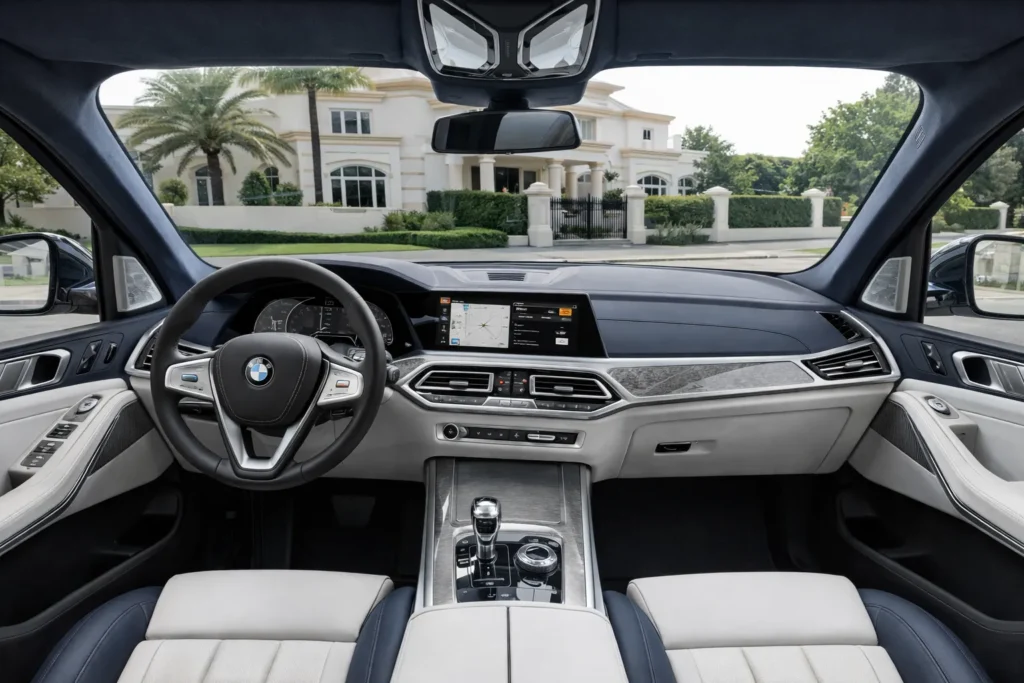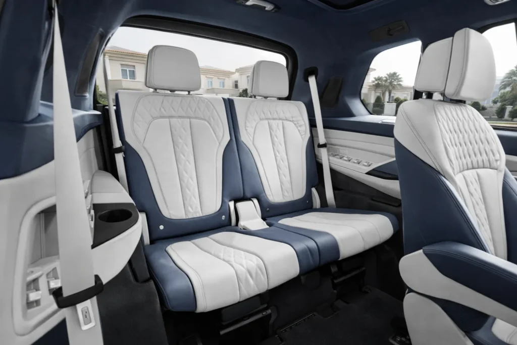 The BMW X7 interior creates a strong emotional connection with buyers. Soft leather, crystal style controls and large digital displays give a premium atmosphere. Families in BMW X7 UAE markets like the spacious third row and quiet cabin during long journeys.